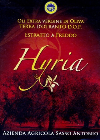 L'Olio Extravergine di Oliva Hyria dell'Azienda Agricola Antonio Sasso , salutare e genuino, 100% italiano, è ottenuto con prima spremitura a freddo, garantendo una "spremuta di olive" di qualità superiore e dal gusto incomparabile. E' adatto per utenti di tutte le età.